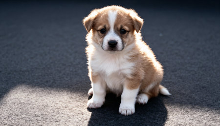 AI Generated. puppy sitting on a gray surface looking at the camera