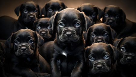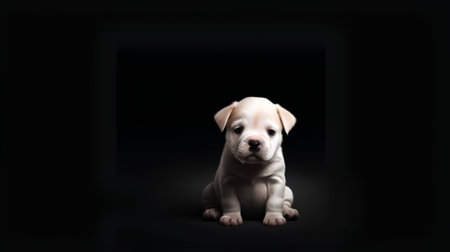 Studio portrait of an adorable puppy on a black background with a black background