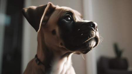 Boxer puppy looking at the camera. Shallow depth of field.