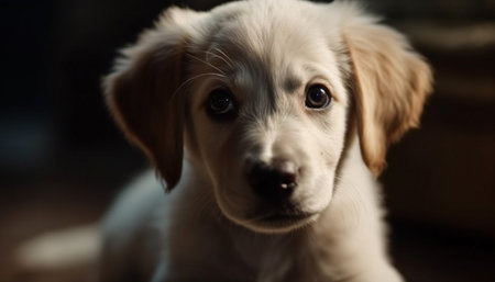 Cute puppy retriever sitting, looking at camera with innocence and softness generated by artificial intelligence