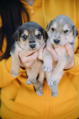 Little puppies at temporary volunteer home. High quality photo