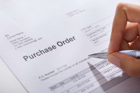 Close-up Of A Person Hand Filling A Purchase Order Form