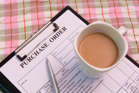 Coffee cup on purchase order form