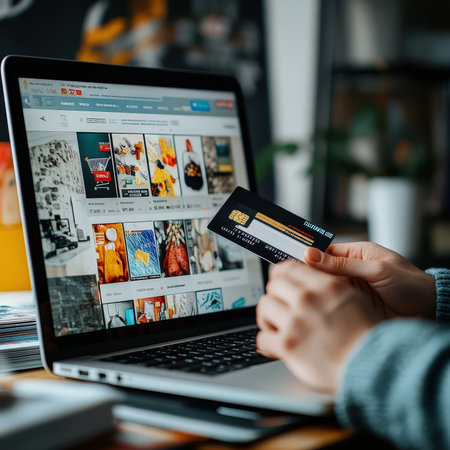 Person shopping online with laptop, credit card, browsing e-commerce website