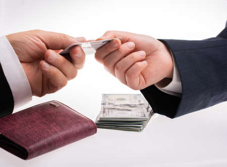 Businessman giving and receiving US dollar banknote money
