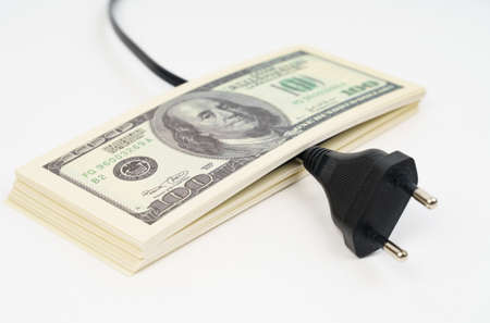 business concept. Electric plug and dollars on the table.