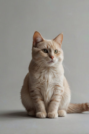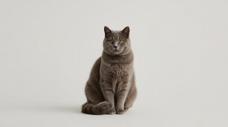 AI Generated. Beautiful british cat with yellow eyes on a gray background