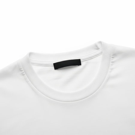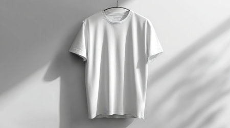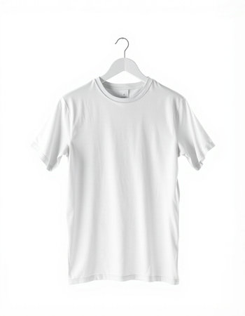 A simple white shirt is laid flat on a clean surface. The shirt has short sleeves and a round neck. It shows no designs or patterns and is bright under natural light.
