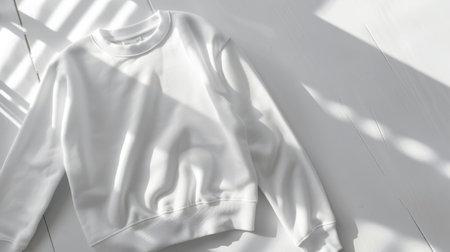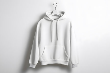 This stylish white hooded sweatshirt is elegantly laid out on a soft gray background, showcasing its cozy fabric and modern design, perfect for fashion use.