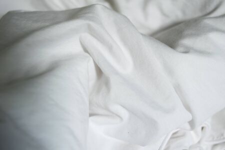 Abstract White Bedding Sheets or White wrinkled fabric background texture and Texture with copy-space :Creased or wrinkled white fabric,Soft focus