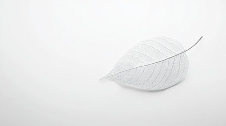 A delicate leaf rests on a minimalist background, showcasing intricate textures and patterns. This serene image embodies simplicity and natural beauty.