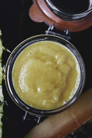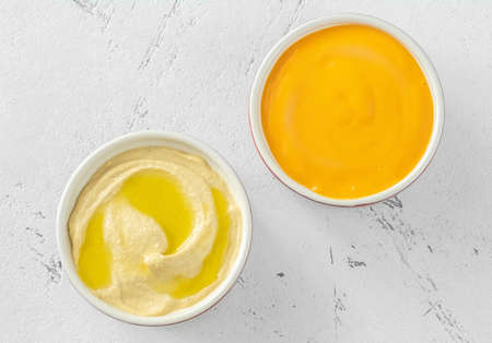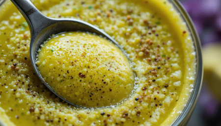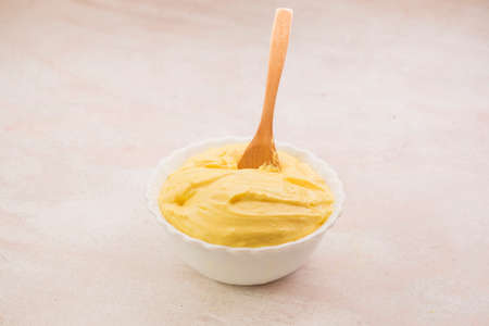 Close up texture of dijon mustard with tangy swirls for culinary design