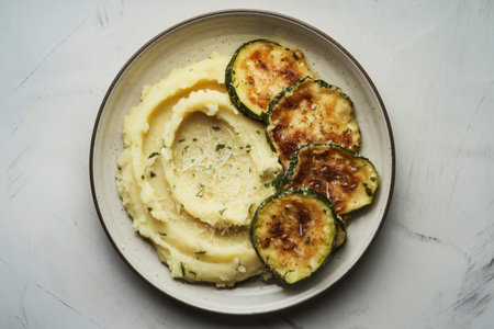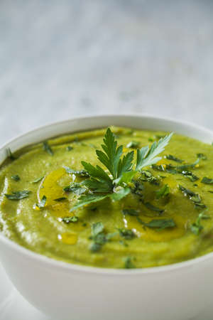 healthy plant-based food recipes concept, vegan polenta with herbs and nutritional yeast
