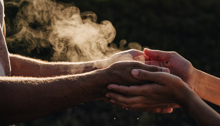 Close-up of hands of man and woman holding hands with smoke