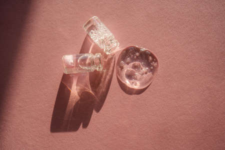 Liquid face serum in a glass bottles with a dropper. Essence of skin care for health and beauty. Copy space