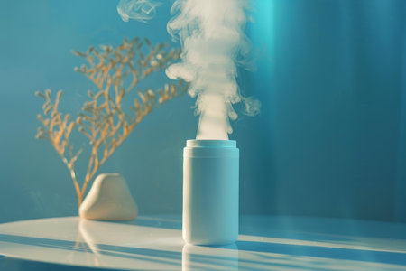 White air purifier releasing a lot of smoke in a modern interior