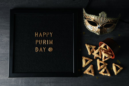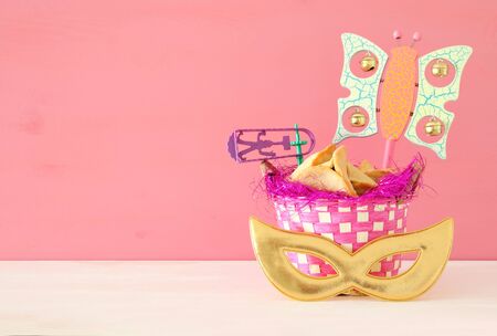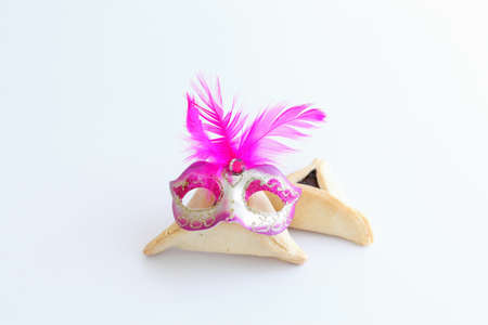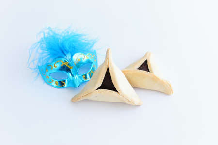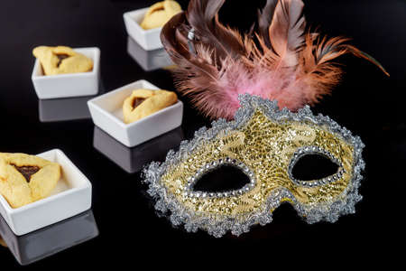 Hamantaschen cookies and carnival mask purim Jewish holiday celebration
