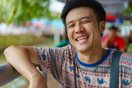 Portrait of a young asian man smiling at the camera.