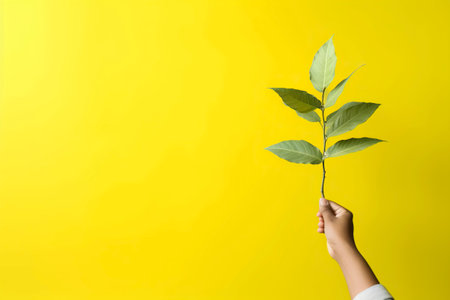 Discover the harmonious blend of nature and humanity in a captivating design featuring simple leaves on a solid color background. AI Generated