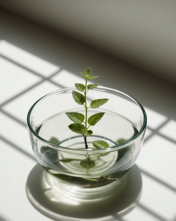 AI Generated. A small plant is sitting in a bowl of water