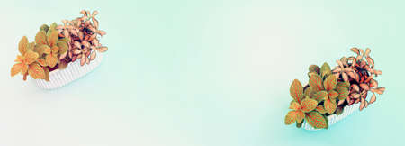 image of beautiful fittonia plants over pastel blue background