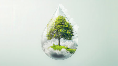 Ecology concept with green tree in water drop. Ecology concept.