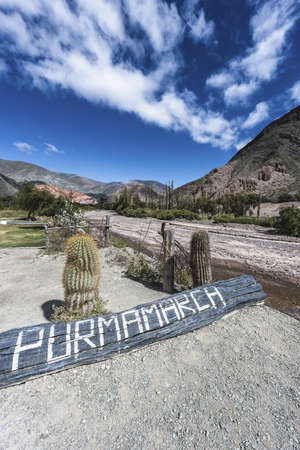 Sign in Purmamarca, near Cerro de los Siete Colores (The Hill of Seven Colors), in the colourful valley of Quebrada de Humahuaca in Jujuy Province, northern Argentina.