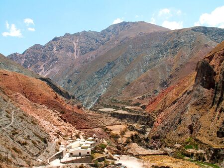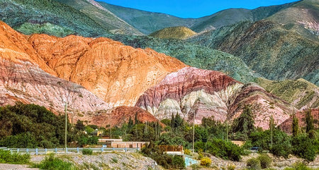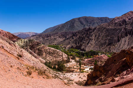 Maimara, Jujuy, Argentina. January 18 2020. View of the mountains and the village of Maimara in the Quebrada de Humahuaca North of Argentina.
