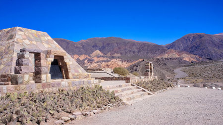 Pyramid Monument to the archaeologists at Pucara de Tilcara old pre-inca ruins - Tilcara, Jujuy, Argentina