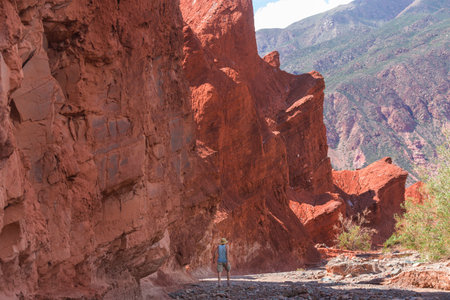 Man walking in the mountains near Cafayate in Northern Argentina, South America