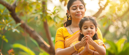 Hindu girl praying, peace, hope, dreams concept. Ai generated