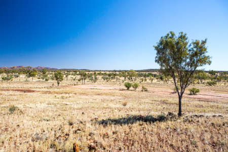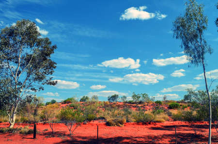 Red dirt, trees, blue sky the Australia outback