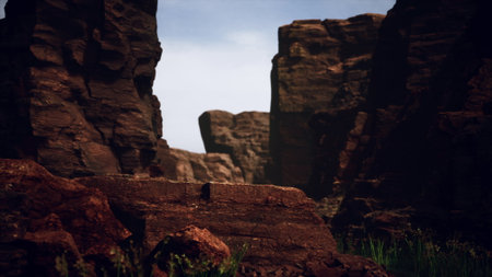 A breathtaking view of rugged canyons reveals dramatic rock formations and lush greenery, illuminated by the warm glow of the setting sun. Natures beauty captivates the spirit of exploration.