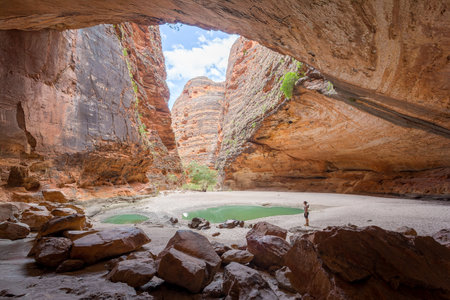 A person explores a stunning natural gorge in Western Australia..