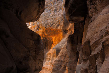 The Siq, the narrow canyon that serves as the entrance passage to the hidden city of Petra, Jordan.