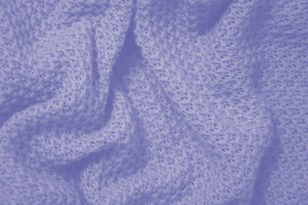 Color of the year 2022 very peri. Knitted sweater texture closeup. Trendy soft abstract background.