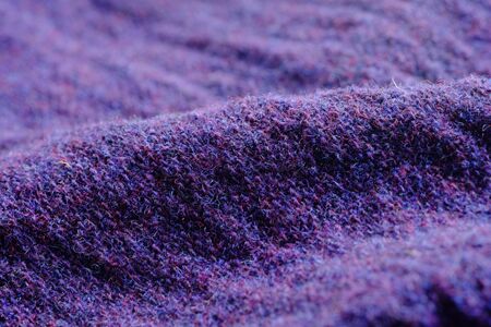 Purple knitted fabric closeup. Textile background. Macro photo