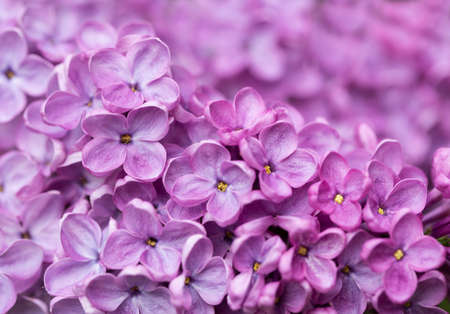 Close-Up Purple Lilac Flowers Background, Spring Floral Backdrop With Delicate Petals