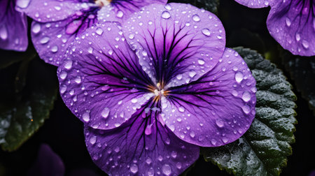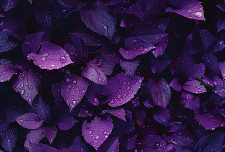 The ethereal beauty of dew-kissed purple leaves: a close-up view that captures the essence of nature's art