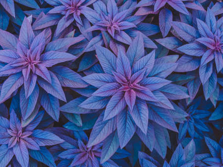 Top view of the plants leaves. Background for overlay text. Trendy very peri violet color.