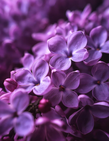 Lilac macro, Cinematic light, Shallow depth of field, Wide angle, generated by AI. High quality photo