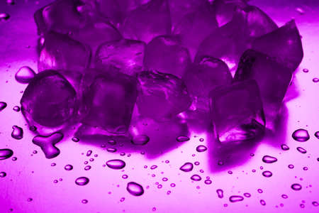 This image features elegant purple ice cubes placed in a clear glass container on a soft pink background. The composition creates a modern aesthetic, perfect for creative designs.