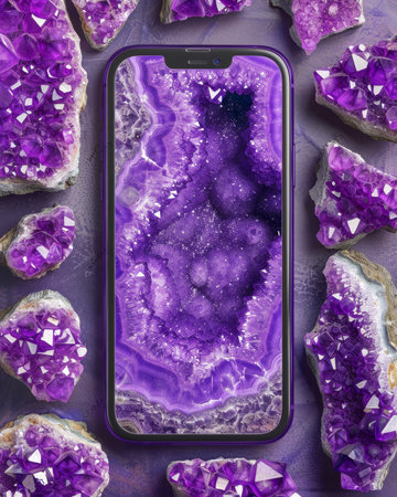 Witchy crystal aesthetic smartphone mockup with blank screen for design presentation