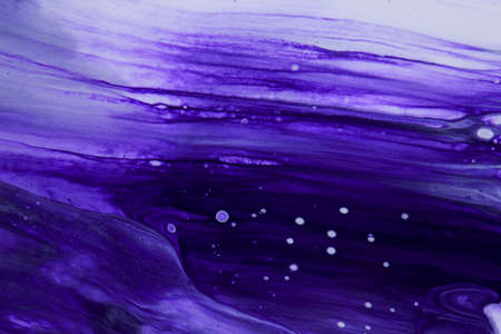 Fluid art texture. Abstract backdrop with mixing paint effect. Liquid acrylic artwork that flows and splashes. Mixed paints for background or poster. Purple, blue and white overflowing colors