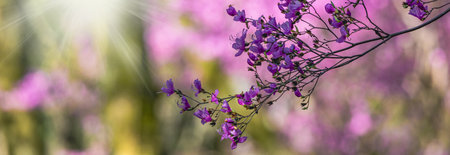 Close-up of delicate lavender blossoms, radiating serenity and springtime charm. Soft lighting enhances their ethereal beauty.