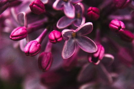 Extreme close up image of lilac blossom. Selective focus and shallow depth of field.