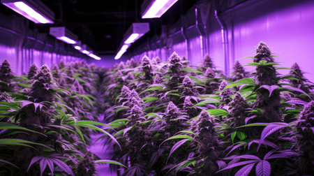 Bright Led Light Illuminates Vibrant Cannabis Buds As They Flourish And Grow. Сoncept Macro Photography, Cannabis Cultivation, Vibrant Bud Growth, Led Grow Lights, Botanical Beauty