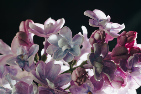close-up of lilac flowers on a black background