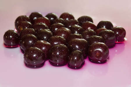 Freshly washed cherry fruits. A photo from a short distance.