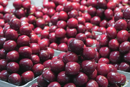 Fresh ripe sweet dark red cherry berries on market
